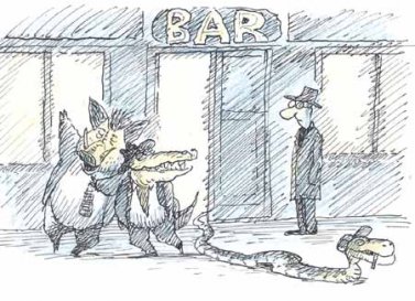 - Любі акціонери! Наше підприємство перепрофілюється. Тепер воно буде випускати окорочки. Занятість усім гарантуємо!